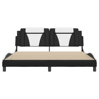 Get a better restful night's sleep from this bed frame with headboard! It makes a welcoming addition to any bedroom. Durable faux leather: Premium faux leather is a highly durable material. It is resistant to stain, making it easy to clean with a damp cloth. The smooth surface also gives a luxurious look and the beauty of real leather.Plywood slats: The plywood slats provide good weight distribution, ensuring that the mattress stays in place with every twist and turn of your body during sleep.Excellent support: The headboard pillow is stuffed with foam for ultra-soft and optimal comfort, providing you with excellent back support while you're sitting up in bed to read or watch TV.Waved side design: The waved look of the bed frame is stylish and sophisticated, adding a modern and elegant touch to your decor, making it the focal point of your bedroom. Good to know:A mattress is not included with this bed. We do offer a various selection of mattresses. You can check our shop for a matching mattress.