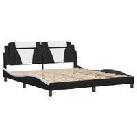 Get a better restful night's sleep from this bed frame with headboard! It makes a welcoming addition to any bedroom. Durable faux leather: Premium faux leather is a highly durable material. It is resistant to stain, making it easy to clean with a damp cloth. The smooth surface also gives a luxurious look and the beauty of real leather.Plywood slats: The plywood slats provide good weight distribution, ensuring that the mattress stays in place with every twist and turn of your body during sleep.Excellent support: The headboard pillow is stuffed with foam for ultra-soft and optimal comfort, providing you with excellent back support while you're sitting up in bed to read or watch TV.Convenient design: The cushion headboard has a zipper for easy installation, and the hook-and-loop fasteners on the back can be used to secure the LED lights.Waved side design: The waved look of the bed frame is stylish and sophisticated, adding a modern and elegant touch to your decor, making it the focal point of your bedroom. Good to know:A mattress is not included with this bed. We do offer a various selection of mattresses. You can check our shop for a matching mattress.