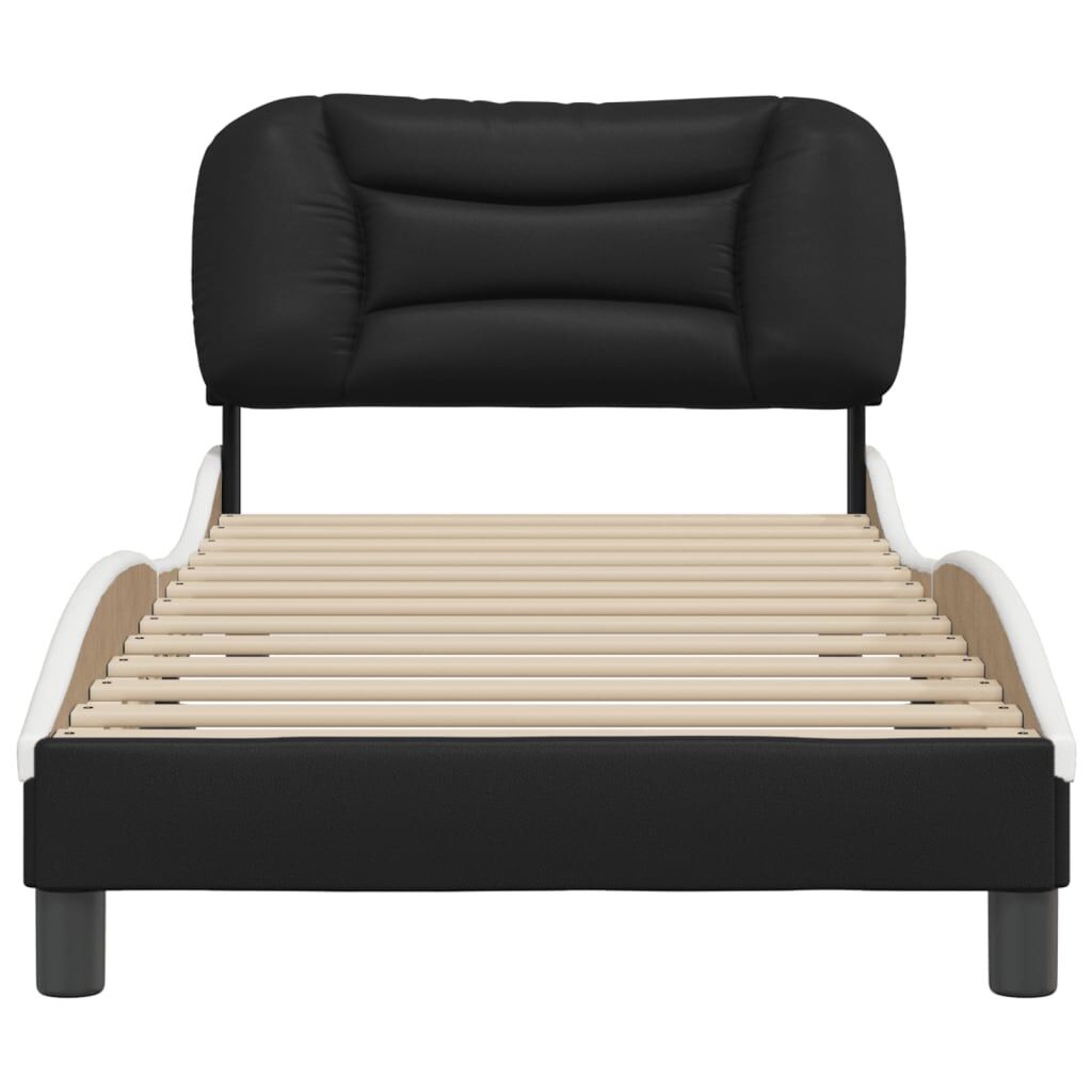 Get a better restful night's sleep from this bed frame with headboard! It makes a welcoming addition to any bedroom. Durable faux leather: Premium faux leather is a highly durable material. It is resistant to stain, making it easy to clean with a damp cloth. The smooth surface also gives a luxurious look and the beauty of real leather.Plywood slats: The plywood slats provide good weight distribution, ensuring that the mattress stays in place with every twist and turn of your body during sleep.Excellent support: The headboard pillow is stuffed with PP fibre for ultra-soft and optimal comfort, providing you with excellent back support while you're sitting up in bed to read or watch TV.Waved side design: The waved look of the bed frame is stylish and sophisticated, adding a modern and elegant touch to your decor, making it the focal point of your bedroom. Good to know:A mattress is not included with this bed. We do offer a various selection of mattresses. You can check our shop for a matching mattress.