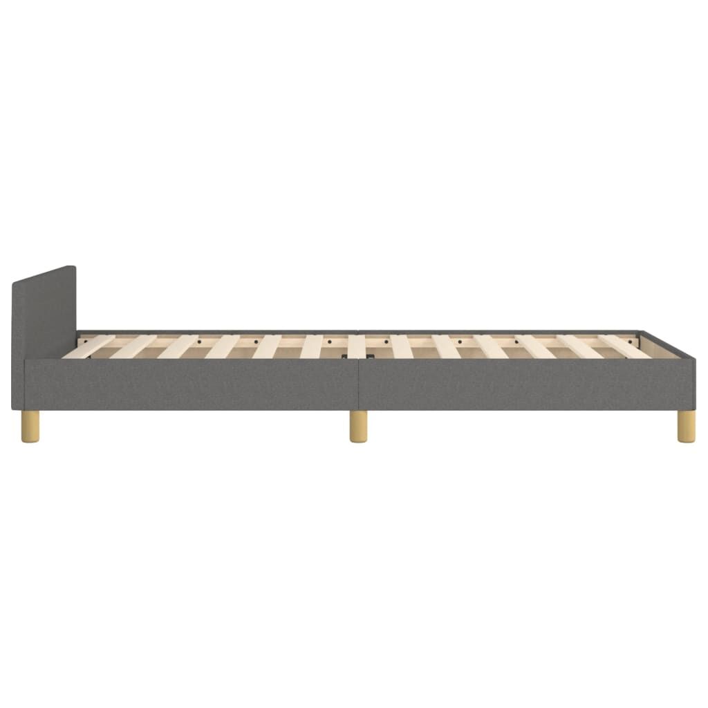 Get a better restful night's sleep from this bed frame with headboard! It makes a welcoming addition to any bedroom. Durable fabric: The fabric features a simple and clean look while remaining breathable and long-lasting.Adjustable height: The bed headboard is adjustable in height as per your preference.Supportive legs: The bed is supported by sturdy legs, which ensure its stability, safety, and firmness.Plywood slats: The plywood slats of the single bed provide good weight distribution, ensuring that the mattress stays in place with every twist and turn of your body during sleep.Excellent support: The headboard of the bed base provides you with excellent back support when you sit up in bed to read or watch TV. Good to know:A mattress is not included with this bed. We do offer a various selection of mattresses. You can check our shop for a matching mattress.
