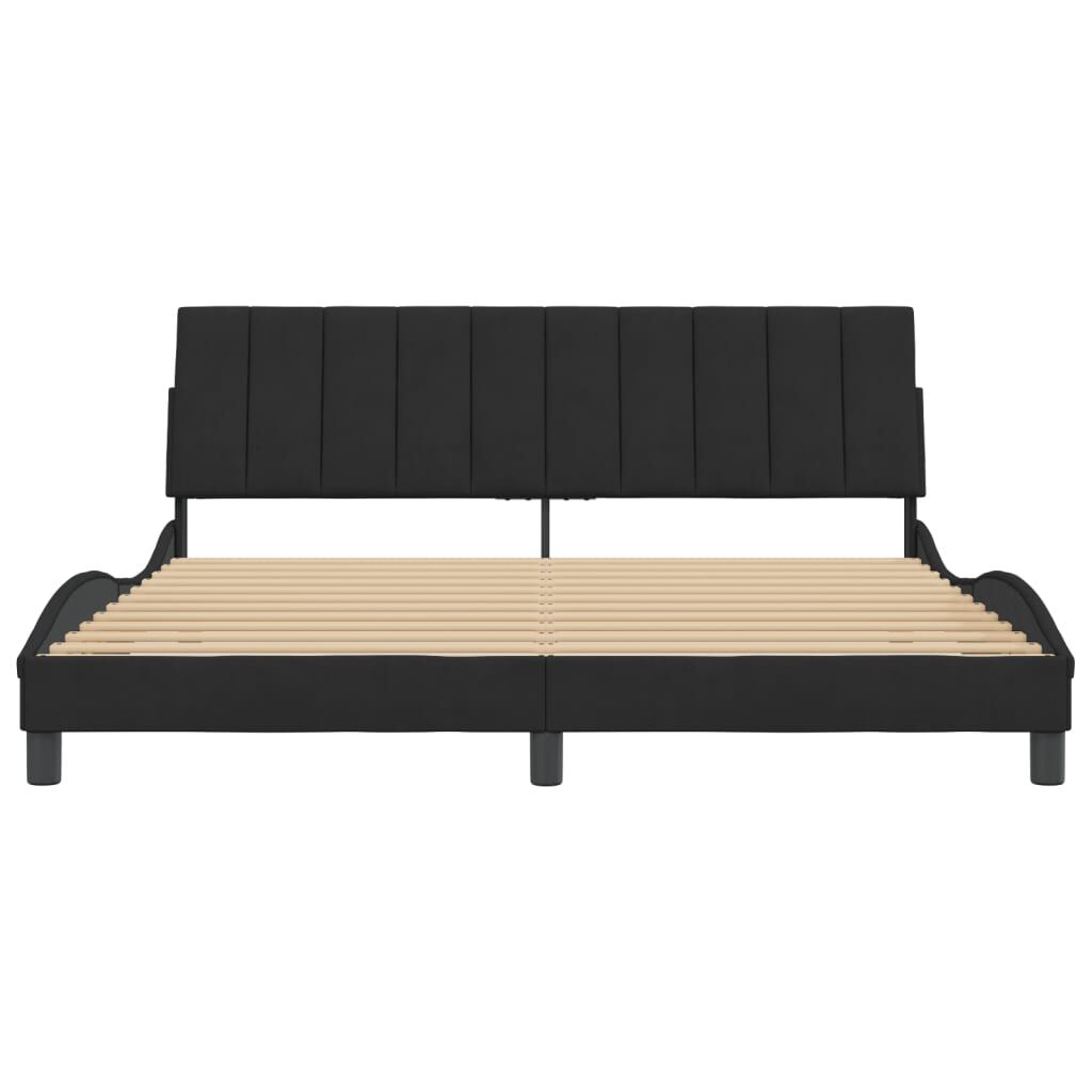Get a better restful night's sleep from this bed frame with headboard! It makes a welcoming addition to any bedroom. Soft velvet: Velvet is a soft and comfortable fabric that feels nice against the skin.Plywood slats: The plywood slats provide good weight distribution, ensuring that the mattress stays in place with every twist and turn of your body during sleep.Excellent support: The headboard pillow is stuffed with foam for ultra-soft and optimal comfort, providing you with excellent back support while you're sitting up in bed to read or watch TV.Convenient design: The cushion headboard has a zipper for easy installation, and the hook-and-loop fasteners on the back can be used to secure the LED lights.Waved side design: The waved look of the bed frame is stylish and sophisticated, adding a modern and elegant touch to your decor, making it the focal point of your bedroom. Good to know:A mattress is not included with this bed. We do offer a various selection of mattresses. You can check our shop for a matching mattress.