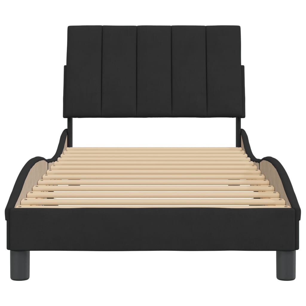 Get a better restful night's sleep from this bed frame with headboard! It makes a welcoming addition to any bedroom. Soft velvet: Velvet is a soft and comfortable fabric that feels nice against the skin.Plywood slats: The plywood slats provide good weight distribution, ensuring that the mattress stays in place with every twist and turn of your body during sleep.Excellent support: The headboard pillow is stuffed with foam for ultra-soft and optimal comfort, providing you with excellent back support while you're sitting up in bed to read or watch TV.Convenient design: The cushion headboard has a zipper for easy installation, and the hook-and-loop fasteners on the back can be used to secure the LED lights.Waved side design: The waved look of the bed frame is stylish and sophisticated, adding a modern and elegant touch to your decor, making it the focal point of your bedroom. Good to know:A mattress is not included with this bed. We do offer a various selection of mattresses. You can check our shop for a matching mattress.