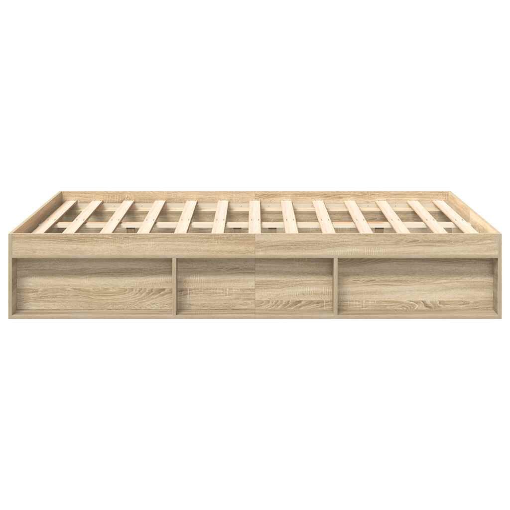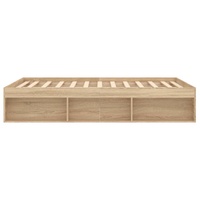 Take the modern route to your bedroom with this bed frame! It will make a practical and decorative addition to your interior. Durable material: The engineered wood is of exceptional quality with smooth surface and also features strength, stability and resistance to moisture.Plywood slats: The plywood slats provide good weight distribution, ensuring that the mattress stays in place with every twist and turn of your body during sleep.Extra storage space: The guest bed has a total of 6 compartments on two sides of the bed to store things like books, potted plants and other decorations. Good to know:A mattress is not included with this bed. We do offer a various selection of mattresses. You can check our shop for a matching mattress.