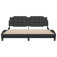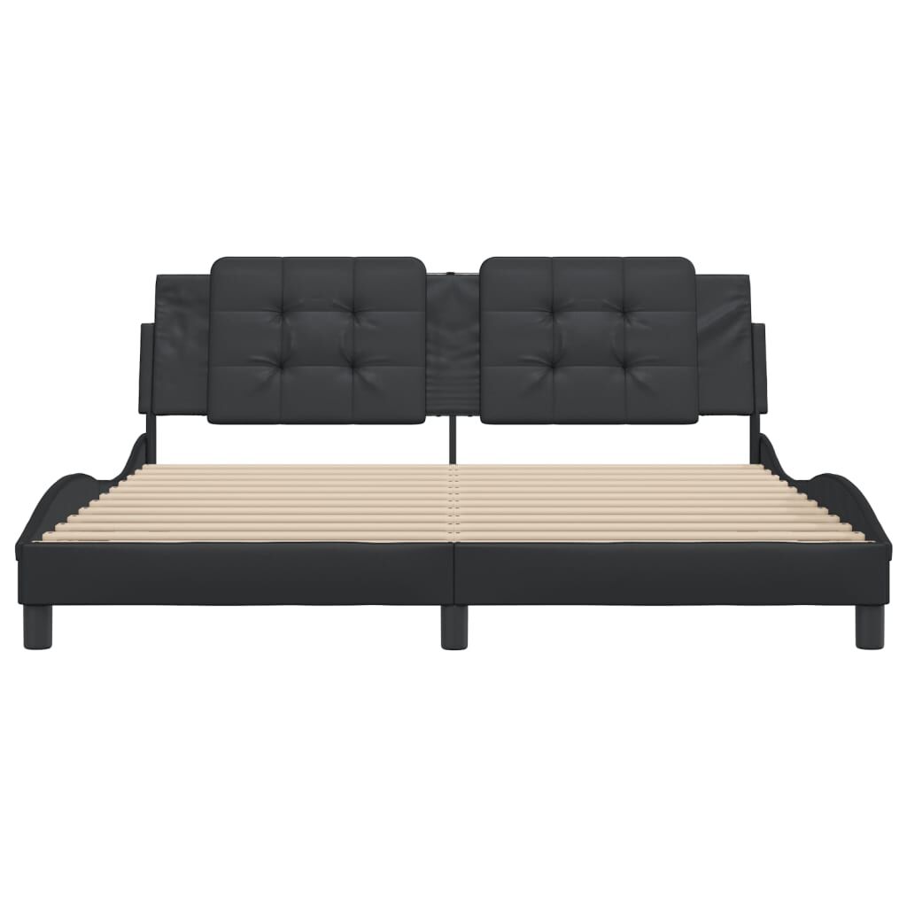 Get a better restful night's sleep from this bed frame with headboard! It makes a welcoming addition to any bedroom. Durable faux leather: Premium faux leather is a highly durable material. It is resistant to stain, making it easy to clean with a damp cloth. The smooth surface also gives a luxurious look and the beauty of real leather.Plywood slats: The plywood slats provide good weight distribution, ensuring that the mattress stays in place with every twist and turn of your body during sleep.Excellent support: The headboard pillow is stuffed with foam for ultra-soft and optimal comfort, providing you with excellent back support while you're sitting up in bed to read or watch TV.Convenient design: The cushion headboard has a zipper for easy installation.Waved side design: The waved look of the bed frame is stylish and sophisticated, adding a modern and elegant touch to your decor, making it the focal point of your bedroom. Good to know:A mattress is not included with this bed. We do offer a various selection of mattresses. You can check our shop for a matching mattress.
