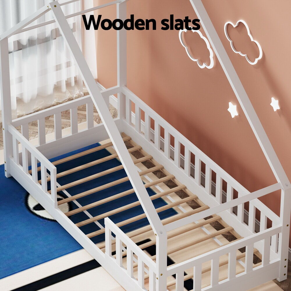 $156.97Introducing our whimsical house-shaped bed frame, crafted from solid pine wood for ultimate durability. Designed with kids in mind, it features safe, non-toxic paint, smooth edges, and sturdy construction. Easy to maintain and fitting a standard Australian Single mattress, it's the perfect addition to any child's bedroom.