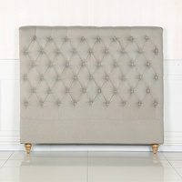 French Design Named after Frances capital-the global centre for art and culture, Sean Headboard is uniquely French with its design, soft gentle curves, the high rise feature, and the studded buttons make it a very exclusive piece of furniture in your bedroom. Vintage Look Metal buttons are studded on both the sides of the headboard. It has thick padded upholstery to ensure comfort. Padding would also safeguard your kids from getting hurt in case of collision with the bed while playing. Firm Support Two aesthetic wooden feet are attached with the headboard which make the bed strong and also keep it a bit high from the ground which enables you to clean away the dirt and dust underneath the bed. Budget Friendly Please note that the headboard is meant to place along the wall so that the back side of it cannot be seen. To reduce the unnecessary cost, we use a black cover instead of linen fabric. You can find the unassembled legs inside this black cover.