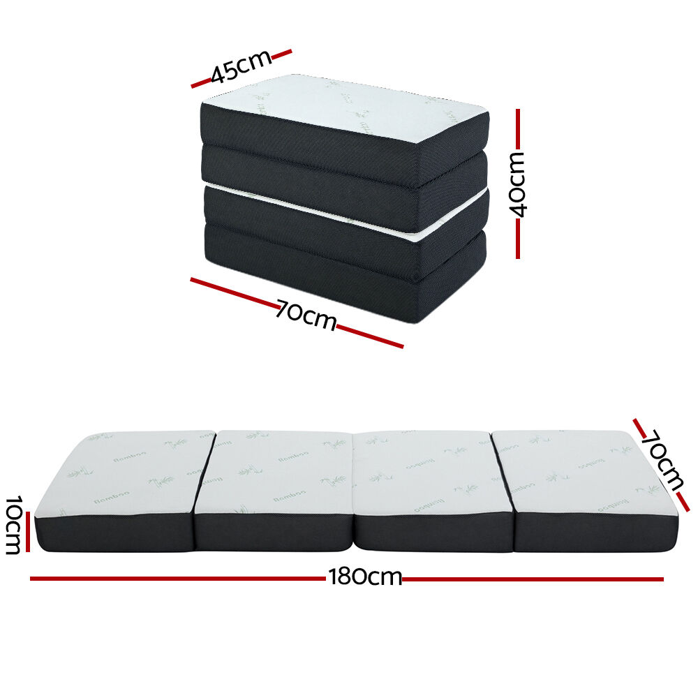 A couch by day, a bed by night. Convertible in use, our Giselle Bedding Folding Foam Mattress is great to have in any home. It is foldable and can easily be stored away or used as an extra couch during the day. Then when the sun begins to set, you can let it unfold to become a comfortable instant bed for sleepovers or unexpected guests. The mattress would also be perfect for places such as tiny city apartments and residential colleges and where there is limited space for large sofas and beds. Or to feel at home while you are out and about, such as during camping and road trips. And the mattress is not only versatile, but reliable. Its cover with bamboo fabric top and air mesh fabric sides and bottom feels absolutely heavenly and is breathable to keep you dry and comfortable throughout the night, while the high-density foam provides adequate support all round. Best of all, the cover is removable and washable for easy cleaning and maintenance.