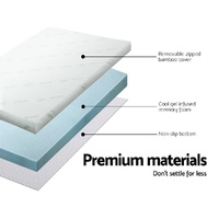 $158.85Add that extra bit of comfort to your mattress. An extra 5cm to be precise with our cool gel mattress topper. And the difference is simply wonderful. That's because our topper provides palpable relief to your pressure joints no matter how you sleep, a cooler sleeping surface and not least, individual contouring of your body shape thanks to the memory foam. The memory foam also helps to even body weight distribution, eliminate motion disturbance and dissipate body heat to keep your rest nice and cool. Eco-friendly in every way with its highly breathable bamboo fabric covering, our cool get mattress topper is just the extra that you need to turn your rest and sleep from good to great.