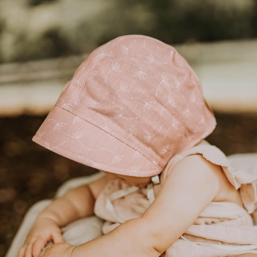 It?s hard to resist blowing a dandelion! These ones are already on their way, floating across a pale pink backdrop? A simply sweet print for those who love a subtle pattern. Reverse is the perfect neutral Flax ? guaranteed to go with everything! Frances is available in Baby Flap Hat, Bonnet, Panelled Bucket and Ladies Sun Hat.