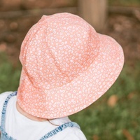 A new colourway for us for spring: a peach hat with simple white flowers ? one to wear with crisp whites and classic denim. Available in Legionnaire, Toddler Bucket and Ponytail Bucket.