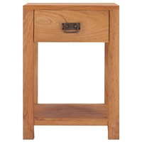 This colonial-style wooden bedside cabinet exudes a rustic charm and will make a great addition to your interior. The nightstand is crafted from solid teak wood, which makes it very durable and hard-wearing. The sturdy top is ideal for keeping an alarm clock, a reading lamp, books, etc., or for displaying photo frames or other decorative items. The drawer and shelf provide space for keeping all kinds of smaller items organised and within reach. The item is already assembled; no assembly is required.