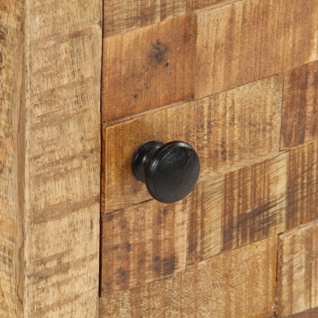 This wooden bedside cabinet exudes a rustic charm to your existing interior. Made of solid mango wood, a tropical hardwood with the strength to bear the weight and also stand the wear and tear of time, this bedside table is stable and durable. The craftsmanship and the beautiful wood grains make every piece of furniture unique and slightly different from the next. It has a big compartment behind a door to store your items. The sturdy tabletop can be used to display decorative items. It even serves as a nightstand, storage cabinet, side table etc. Important note: Colours and grains vary from piece to piece, making each piece unique. The delivery is random, ensuring the exclusivity and individuality of your product.