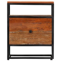 Introduce an air of mid-century elegance to your interior with our beautiful solid reclaimed wood bedside cabinet! This nightstand is made of solid reclaimed wood that has been sourced from joists, floors and support beams from old buildings being demolished, and it can consist of different types of wood like pine, teak, beech, oak, cedar, mango wood, acacia, etc. This means the reclaimed wood retains the characteristics of these different types of wood. Reclaimed wood is already aged, weathered and dried, so it doesn't shrink or bend. Every step of the process is carried out with the greatest care, be it polishing, painting or lacquering. The exquisite craftsmanship and the graceful wood grains make every piece of furniture distinctive and slightly different from the next. This telephone stand is distinguished by 1 drawer and 1 shelf, offering an ideal solution for keeping your smaller items organised and within reach. Additionally, the powder-coated steel frame adds to the cabinet's sturdiness and stability. The bed cabinet is easy to assemble. Important note: Colours and wood grains vary from piece to piece, making each of our side cabinet unique. The delivery is random, ensuring the exclusivity and individuality of your product.