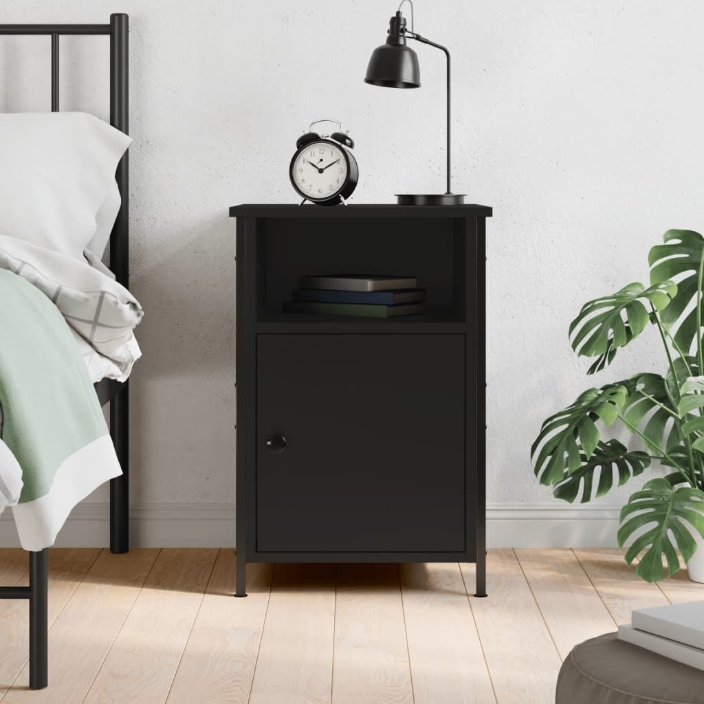 $60.15This bedside cabinet with an elegant design makes a timeless addition to your interior decor. Durable material: The engineered wood is of exceptional quality with a smooth surface and features strength, stability and resistance to moisture.Ample storage space: The cabinet offers ample storage space for keeping your various daily essentials well organised and within easy reach.Adjustable screw: You can adjust the height of the black screw to keep the nightstand stable on uneven ground.Sturdy frame: The iron frames ensure the sturdiness and stability of the side cabinet.Displaying function: You can also place your favourite photos, decorations or flowers on top of the bedside table to enrich your life. Warning:To prevent it being overturned, this product must be used with the provided wall attachment device.