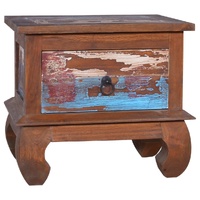 This bedside cabinet, with a retro yet rustic style, is meant to be the eye-catcher in your home decor. This nightstand, constructed from extremely durable teak hardwood, is finished and polished with natural oil to give a smooth appearance. The multicolour spots pattern and unique claw-legs design complete the vintage look. Also, the equipped drawer helps keep your essentials organised and within reach. Teak wood is known for its exceptional strength, making it far more suitable for furniture than any other kind of wood. Teak wood is the perfect choice if you want to purchase a long-lasting piece of furniture.