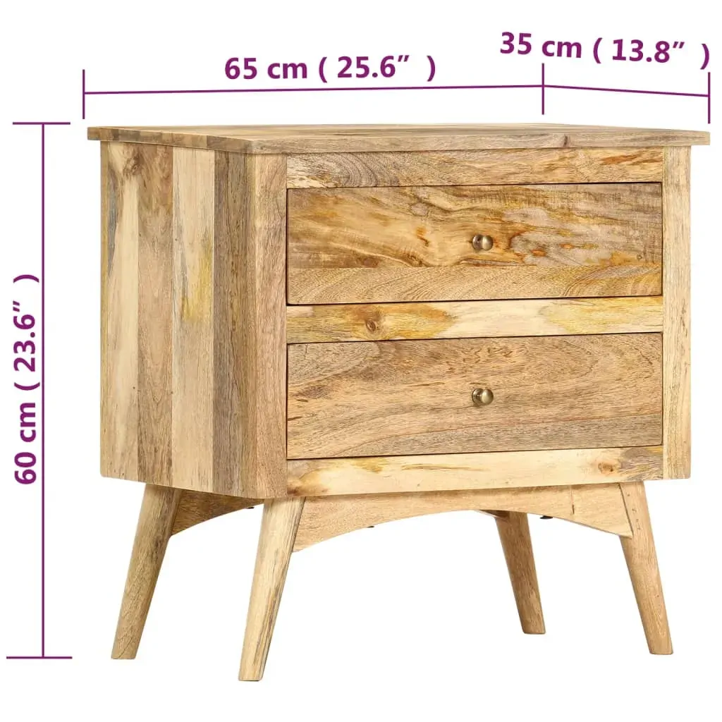Introduce an air of rustic charm to your interior with our elegant wooden bedside table! It can also be used as a nightstand, bed cabinet, bed drawer cabinet etc. Made of solid mango wood, the nightstand has been given a beautiful finish by polishing and lacquering, making it exude a refined look. Mango wood is a dense and robust hardwood which has beautiful brown or golden streaks and contours on its surface. Additionally, the 2 drawers provide space for keeping smaller items organised and within reach. Important note: The exquisite craftsmanship and the beautiful solid mango wood grains make every piece of furniture unique and slightly different from the next. The delivery is random, ensuring the exclusivity and individuality of your product. It is easy to assemble. Warning: In order to prevent overturning, this product must be used with the wall attachment device provided.