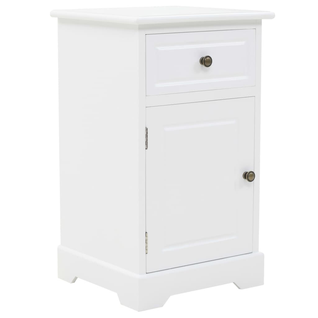 This bedside cabinet will make a perfect addition to your bedroom decor with its chic design and clean white finish. It can also be used as a side cabinet. The nightstand is made of MDF and decorated with metal handles on the drawers. Designed with 1 drawer and 1 large cabinet, it offers ample storage space for keeping small items organised and within reach. You could also place your alarm clock, a refreshing drink of water, or decorative items like photo frames on the cabinet's top surface.