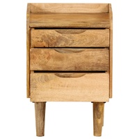 This retro-style wooden bedside cabinet exudes a rustic charm that will make it a decorative addition to your bedroom. The nightstand is handmade of mango wood which is solid, stable, durable and beautiful, and the craftsmanship adds to its spectacular retro style. Every step of the process is carried out with the greatest care, be it polishing, painting or lacquering. The craftsmanship and the beautiful wood grains make every piece of furniture unique and slightly different from the next. It has a sturdy top and three drawers which provide enough space for you to keep various items such as books, glasses, remotes, etc. neatly organised and within reach. Important note: The colours vary from piece to piece, making each of our side cabinets unique. The delivery is random, ensuring the exclusivity and individuality of your product.