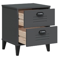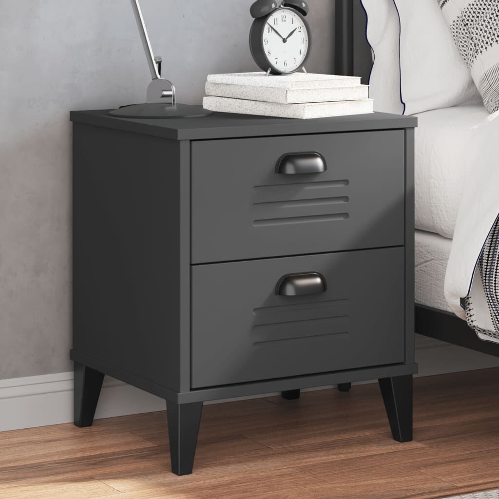 With a stylish design, this bedside cabinet fits easily into your bedroom or living room and adds an industrial charm to your interior. Durable material: The engineered wood is of exceptional quality with smooth surface and also features strength, stability and resistance to moisture.Ample storage space: The nightstand offers ample storage space to keep your essentials well-organised and close at hand.Easy to maintain: The end table is easy to clean with a damp cloth and requires less maintenance.Practical handle: The bed cabinet comes with handles that make it easy to open and close the cabinet while adding extra beauty.