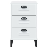 With a stylish design, this bedside cabinet fits easily into your bedroom or living room and adds an industrial charm to your interior. Durable material: The engineered wood is of exceptional quality with smooth surface and also features strength, stability and resistance to moisture.Ample storage space: The nightstand offers ample storage space to keep your essentials well-organised and close at hand.Easy to maintain: The end table is easy to clean with a damp cloth and requires less maintenance.Practical handle: The bed cabinet comes with handles that make it easy to open and close the cabinet while adding extra beauty. Warning:To prevent it from tipping over, this product must be used with the provided wall attachment device.