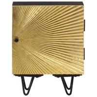 This wooden bedside cabinet is a decorative and practical addition to your bedroom. This nightstand is made of solid mango wood, a tropical hardwood. It has the strength to bear the weight and also stand the wear and tear of time. Additionally, the exquisite craftsmanship and beautiful wood grains make every piece slightly different from the next. The bedside table features a brass front door, adding to its beauty. Its sturdy top and the room inside the door provide enough space for you to keep various items such as books, glasses and clocks neatly organised and within reach. Important note: The colours vary from piece to piece, making each piece unique. The delivery is random, ensuring the exclusivity and individuality of your product.
