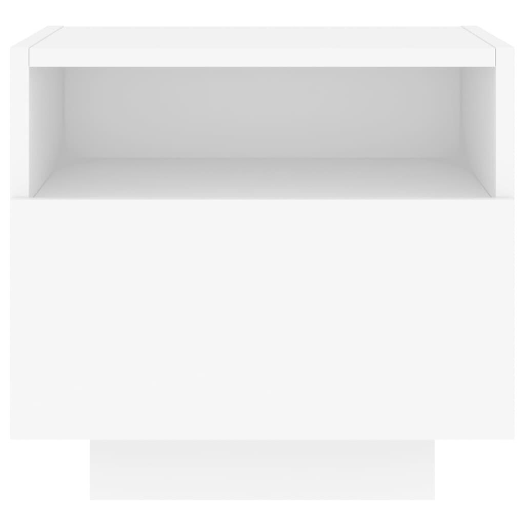 Featuring a trendy yet practical design, this bedside cabinet with LED lights will definitely become a focal point of your room. Durable material: The engineered wood is of exceptional quality with smooth surface and also features strength, stability and resistance to moisture.RGB LED lights: This bed side cabinet features RGB LED lights, which have different menus to change the colour of lights and let the colour adjust automatically.Ample storage space: The bedside table offers handy storage space for keeping your magazines, remote controls and your small items well organised and within reach.Displaying function: The sturdy top of media cabinet is ideal for displaying decorative objects, photo frames, or potted plants. Good to know:The product has a USB connector, but the certified 5V USB power source is not included.