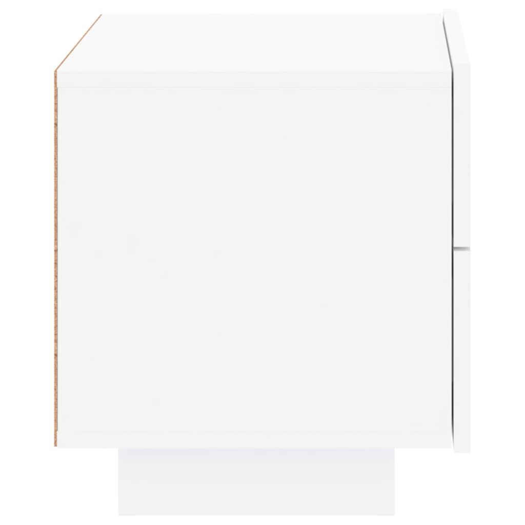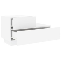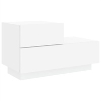 Featuring a trendy yet practical design, this bedside cabinet with LED lights will definitely become a focal point of your room. Durable material: The engineered wood is of exceptional quality with smooth surface and also features strength, stability and resistance to moisture.RGB LED lights: This bed side cabinet features RGB LED lights, which have different menus to change the colour of lights and let the colour adjust automatically.Ample storage space: The bedside table offers handy storage space for keeping your magazines, remote controls and your small items well organised and within reach.Displaying function: The sturdy top of media cabinet is ideal for displaying decorative objects, photo frames, or potted plants. Good to know:The product has a USB connector, but the certified 5V USB power source is not included.