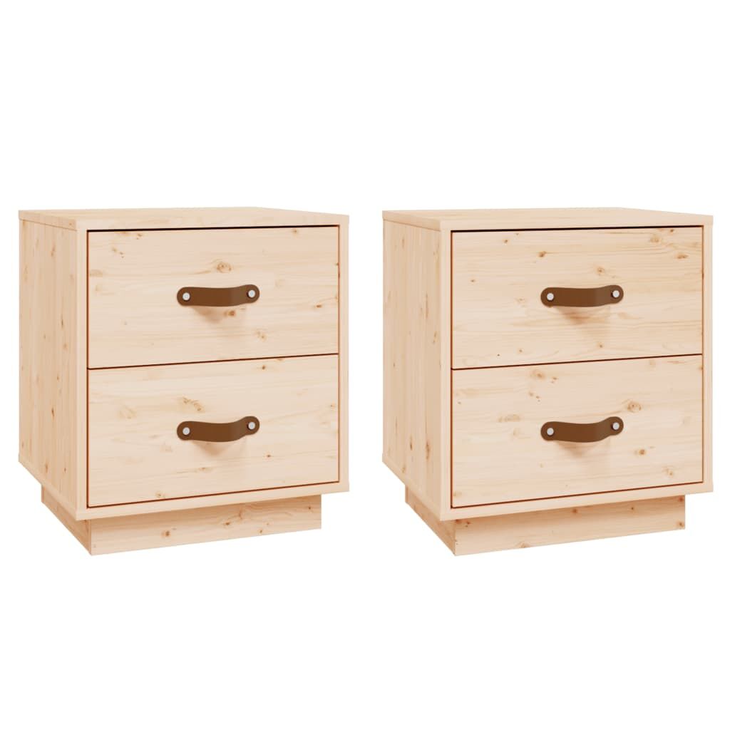 An essential in every bedroom: bedside cabinets! Bring these wooden bedside cabinets to your home right now. Solid pine wood: Solid pine wood is a beautiful natural material. Pine wood has a straight grain, and the knots give the material its signature, rustic look.Ample storage space: The nightstand has two drawers. The spacious drawers allow you to keep your things organised.Multifunctional cabinet: The sturdy top is ideal for displaying decorative objects, photo frames, or potted plants. It can also be used as a side cabinet, end table, etc. Note:Each product comes with an assembly manual in the box for easy assembly.