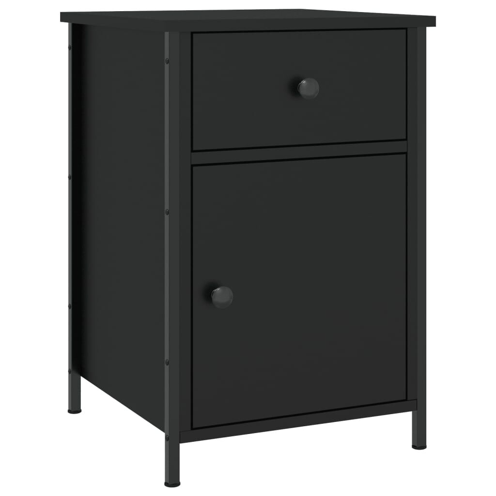 These bedside cabinets with an elegant design make a timeless addition to your interior decor. Durable material: The engineered wood is of exceptional quality with a smooth surface and features strength, stability and resistance to moisture.Ample storage space: The cabinet offers ample storage space for keeping your various daily essentials well organised and within easy reach.Adjustable screw: You can adjust the height of the black screw to keep the nightstand stable on uneven ground.Sturdy frame: The iron frames ensure the sturdiness and stability of the side cabinet.Displaying function: You can also place your favourite photos, decorations or flowers on top of the bedside table to enrich your life. Warning:To prevent it being overturned, this product must be used with the provided wall attachment device.