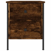 These bedside cabinets with an industrial style make a timeless addition to your interior decor. Durable material: The engineered wood is of exceptional quality with smooth surface and also features strength, stability and resistance to moisture.Sturdy frame: The iron frame of the bedside table ensures sturdiness and stability.Ample storage space: Designed with 2 drawers, the side table offers ample storage space for keeping your various daily essentials well-organised and within easy reach.Adjustable feet: The side cabinet is equipped with 4 adjustable feet that can protect your floor from scratches and keep it stable on the uneven floor.Displaying function: You can place your favourite photos, decorations, or flowers on top of the nightstand to enrich your life. Warning:To prevent it being overturned, this product must be used with the provided wall attachment device.