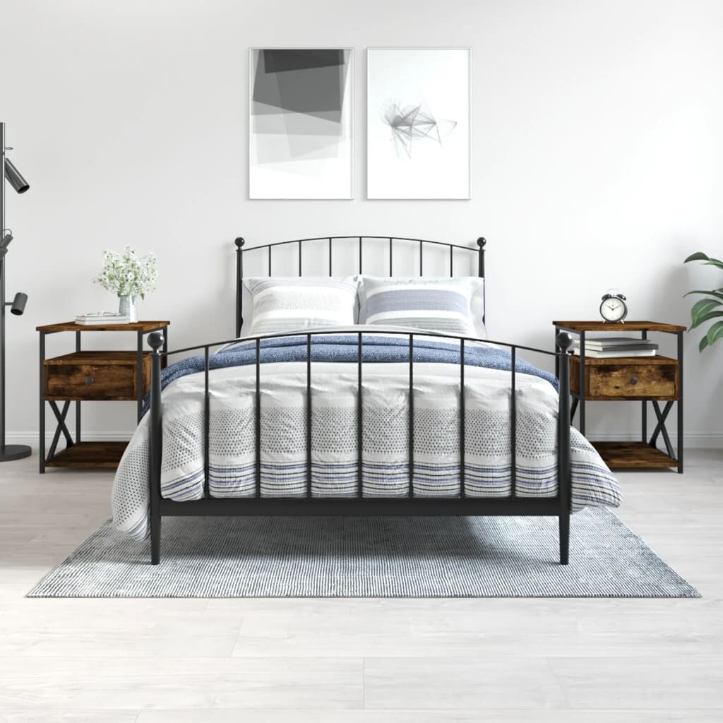 With a simple and compact design, these bedside cabinets fit easily into your bedroom or living room and add a timeless charm to your interior. Durable material: The engineered wood is of exceptional quality with smooth surface and also features strength, stability and resistance to moisture. Made of engineered wood, the bedside table is easy to clean with a damp cloth.Sturdy frame: The iron frame of the cabinet ensures sturdiness and stability.Ample storage space: The bedroom furniture offers ample storage space for keeping your various daily essentials well organised and within easy reach.Displaying function: You can also place your favourite photos, decorations, or flowers on top of the side table to enrich your life.Adjustable feet: Four adjustable feet with plastic pads keep the side cabinet balanced on uneven ground and increase stability. Warning:To prevent it being overturned, this product must be used with the provided wall attachment device.