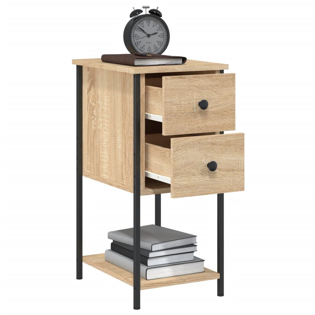 With a simple and compact design, these bedside cabinets fit easily into your bedroom or living room and add a timeless charm to your interior. Durable material: The engineered wood is of exceptional quality with smooth surface and also features strength, stability and resistance to moisture. Sturdy frame: The iron frame ensures sturdiness and stability.Ample storage space: The bedside table offers ample storage space for keeping your various daily essentials well organised and within easy reach.Displaying function: You can also place your favourite photos, decorations, or flowers on top of the side table to enrich your life.Adjustable feet: Four adjustable feet with plastic pads keep the side cabinet balanced on uneven ground and increase stability. Warning:To prevent it being overturned, this product must be used with the provided wall attachment device.