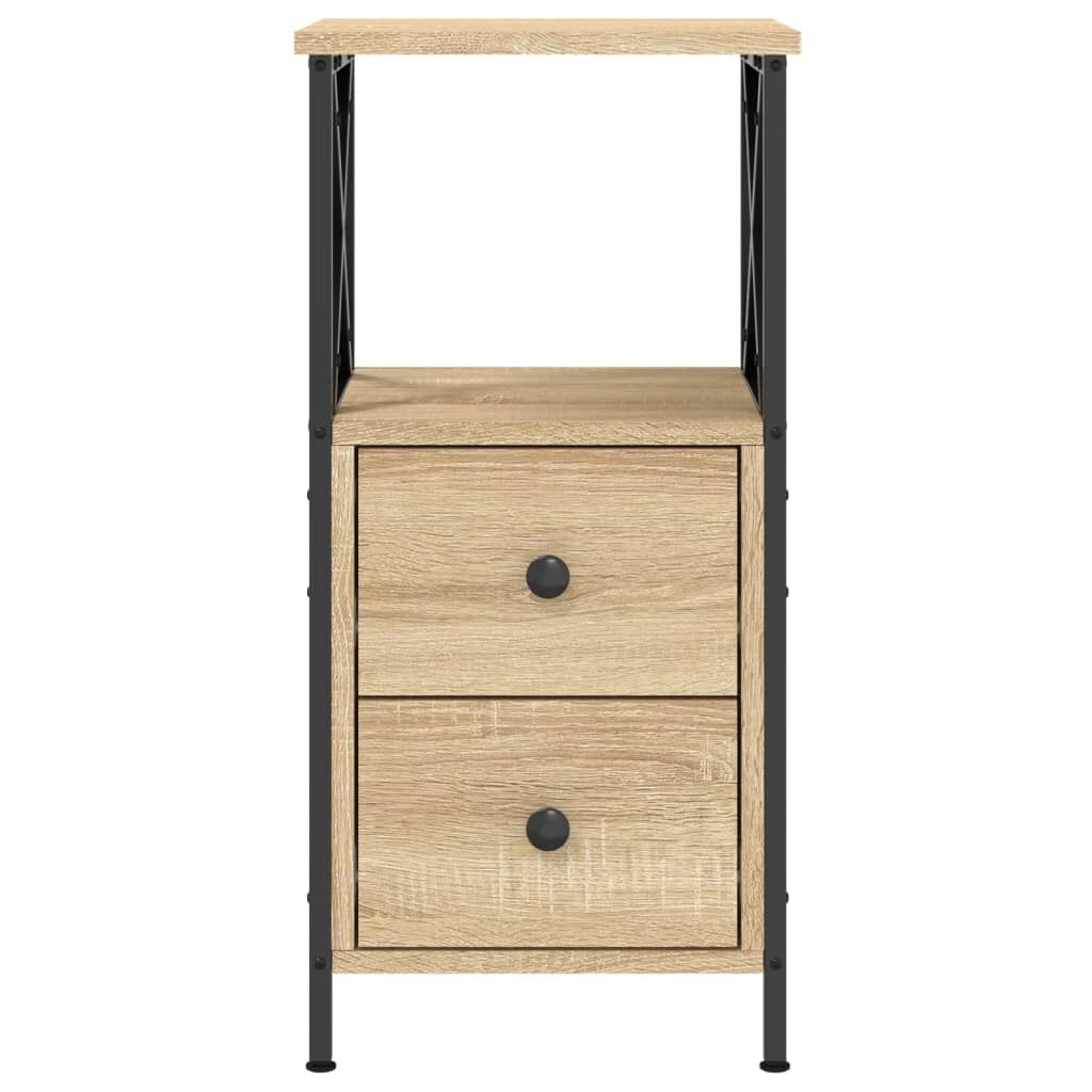 With a simple and compact design, these bedside cabinets fit easily into your bedroom or living room and add a timeless charm to your interior. Durable material: The engineered wood is of exceptional quality with smooth surface and also features strength, stability and resistance to moisture. Sturdy frame: The iron frame ensures sturdiness and stability.Ample storage space: The bedside table offers ample storage space for keeping your various daily essentials well organised and within easy reach.Displaying function: You can also place your favourite photos, decorations, or flowers on top of the side table to enrich your life.Adjustable feet: Four adjustable feet with plastic pads keep the side cabinet balanced on uneven ground and increase stability. Warning:To prevent it being overturned, this product must be used with the provided wall attachment device.