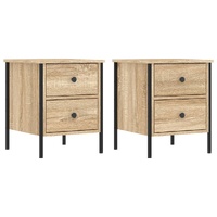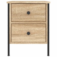 These bedside cabinets with an industrial style make a timeless addition to your interior decor. Durable material: The engineered wood is of exceptional quality with smooth surface and also features strength, stability and resistance to moisture.Sturdy frame: The iron frame of the bedside table ensures sturdiness and stability.Ample storage space: Designed with 2 drawers, the side table offers ample storage space for keeping your various daily essentials well-organised and within easy reach.Adjustable feet: The side cabinet is equipped with 4 adjustable feet that can protect your floor from scratches and keep it stable on the uneven floor.Displaying function: You can place your favourite photos, decorations, or flowers on top of the nightstand to enrich your life. Warning:To prevent it being overturned, this product must be used with the provided wall attachment device.