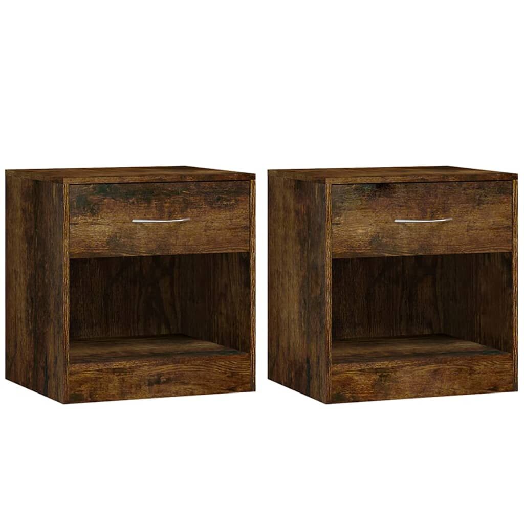 Bedside Cabinets 2 pcs with Drawer Smoked Oak