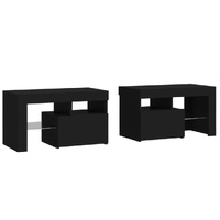 Anchor your living space in contemporary charm with these elegant bedside cabinets! Featuring a trendy yet practical design, these bedside cabinets with LED lights definitely become a focal point of your room. Durable material: The engineered wood is of exceptional quality with smooth surface and also features strength, stability and resistance to moisture. Colorful LED lights: The cabinet features RGB LED lights, which has different menus to change the colour of lights and let the colour adjust automatically differently. The LED lights underline the modern look and contribute to the trendy feeling.Ample storage space: The bedside table provides plenty of storage space for keeping your magazines, books, remote controls and other small items well-organised and within easy reach.Displaying function: The sturdy top of side cabinet is ideal for displaying decorative objects, photo frames, or potted plants. Note:The product has a USB connector, but the certified 5V USB power source is not included.Each product comes with an assembly manual in the box for easy assembly.