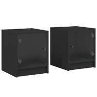 These trendy bedside cabinets featuring an elegant design make a timeless addition to your interior decor. Durable material: The engineered wood is of exceptional quality with smooth surface and also features strength, stability and resistance to moisture.Ample storage space: These bedside tables offer handy storage space for keeping your magazines, remote controls and small items well-organised and within reach.Stable top: The side cabinets feature a stable top that can be used to place table lamps, books, etc.Practical glass doors: Keep your space clutter-free by hiding small essentials behind the doors of bedroom furniture. In addition, these glass doors allow you to see inside the bed side cabinets to display items beautifully.