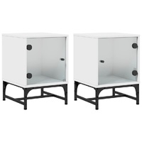 These trendy bedside cabinets featuring an elegant design make a timeless addition to your interior decor. Durable material: The engineered wood is of exceptional quality with smooth surface and also features strength, stability and resistance to moisture.Ample storage space: These bedside tables offer handy storage space for keeping your magazines, remote controls and small items well-organised and within reach.Stable top: The side cabinets feature a stable top that can be used to place table lamps, books, etc.Practical glass doors: Keep your space clutter-free by hiding small essentials behind the doors of bedroom furniture. In addition, these glass doors allow you to see inside the bed side cabinets to display items beautifully.
