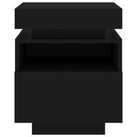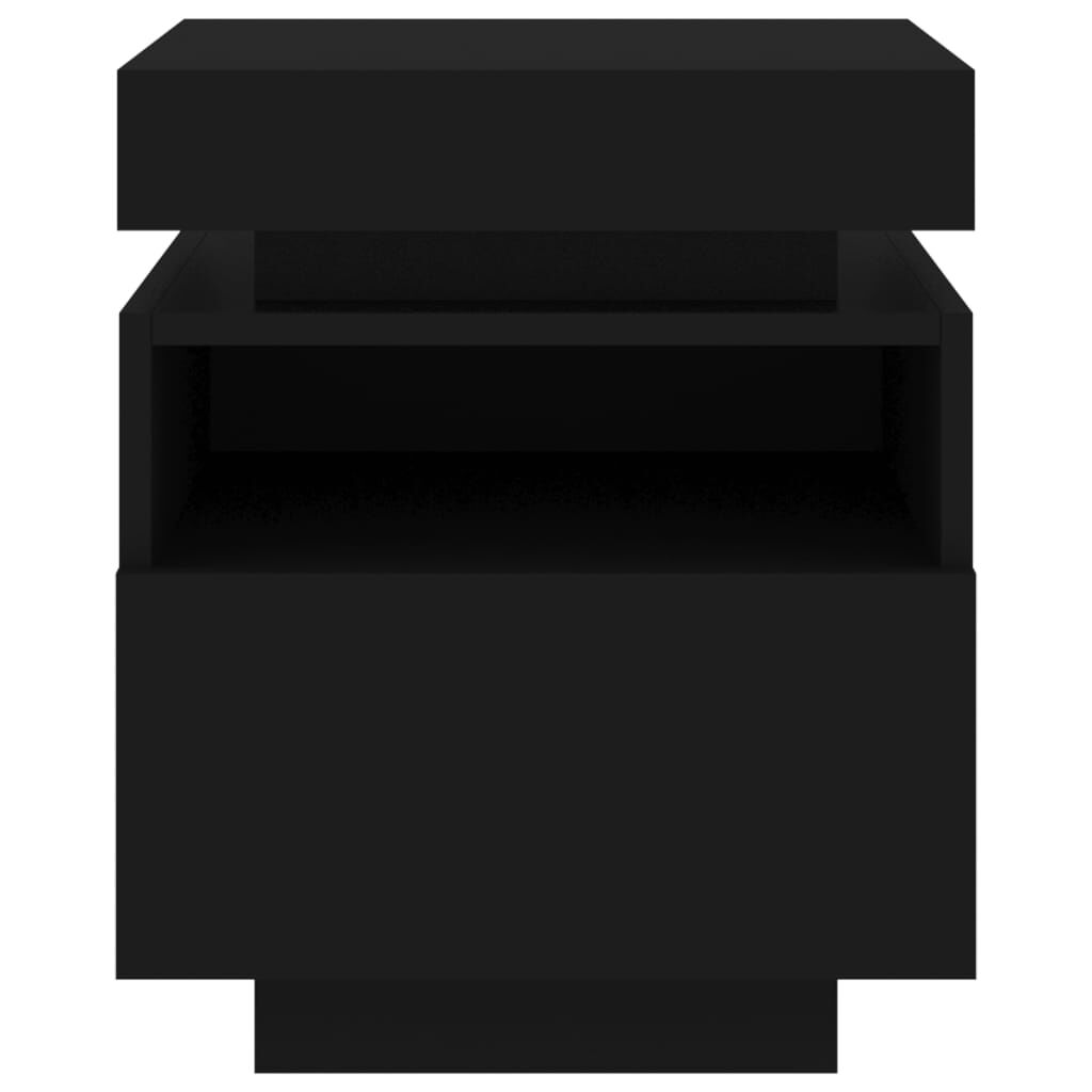 Featuring a trendy yet practical design, these bedside cabinets with LED lights will definitely become a focal point of your room. Durable material: The engineered wood is of exceptional quality with smooth surface and also features strength, stability and resistance to moisture.RGB LED lights: These bed side cabinets feature RGB LED lights, which have different menus to change the colour of lights and let the colour adjust automatically.Ample storage space: These bedside tables offer handy storage space for keeping your magazines, remote controls and your small items well organised and within reach.Displaying function: The sturdy tops of these media cabinets are ideal for displaying decorative objects, photo frames, or potted plants. Good to know:The product has a USB connector, but the certified 5V USB power source is not included.