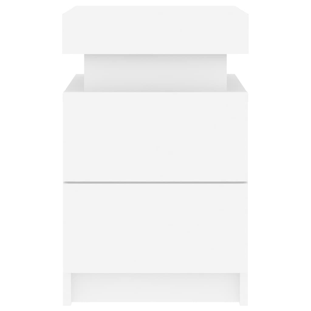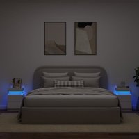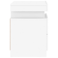 Decorate your bedroom with these modern bedside cabinets with LED lights, it easily blends with furniture in any style at your house. Durable material: The engineered wood is of exceptional quality with a smooth surface and features strength, stability and resistance to moisture.Ample storage space: The bedside tables provide plenty of storage space for keeping your magazines, books, remote controls and other small items well-organised and within easy reach.Displaying function: The sturdy tops of side cabinets are ideal for displaying decorative objects, photo frames, or potted plants.Adjustable LED lights: These bed side tables are equipped with RGB LED lights, which have different menus to change the light colour and adjust it automatically, decorating your home colourful and beautiful. Warning:To prevent it being overturned, this product must be used with the provided wall attachment device. Good to know:The product has a USB connector that requires a certified 5V USB power source (not included).