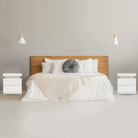 $78.01La Bella Bedside Table 2 Drawers RGB LED Bedroom Cabinet Nightstand Gloss AURORA - White