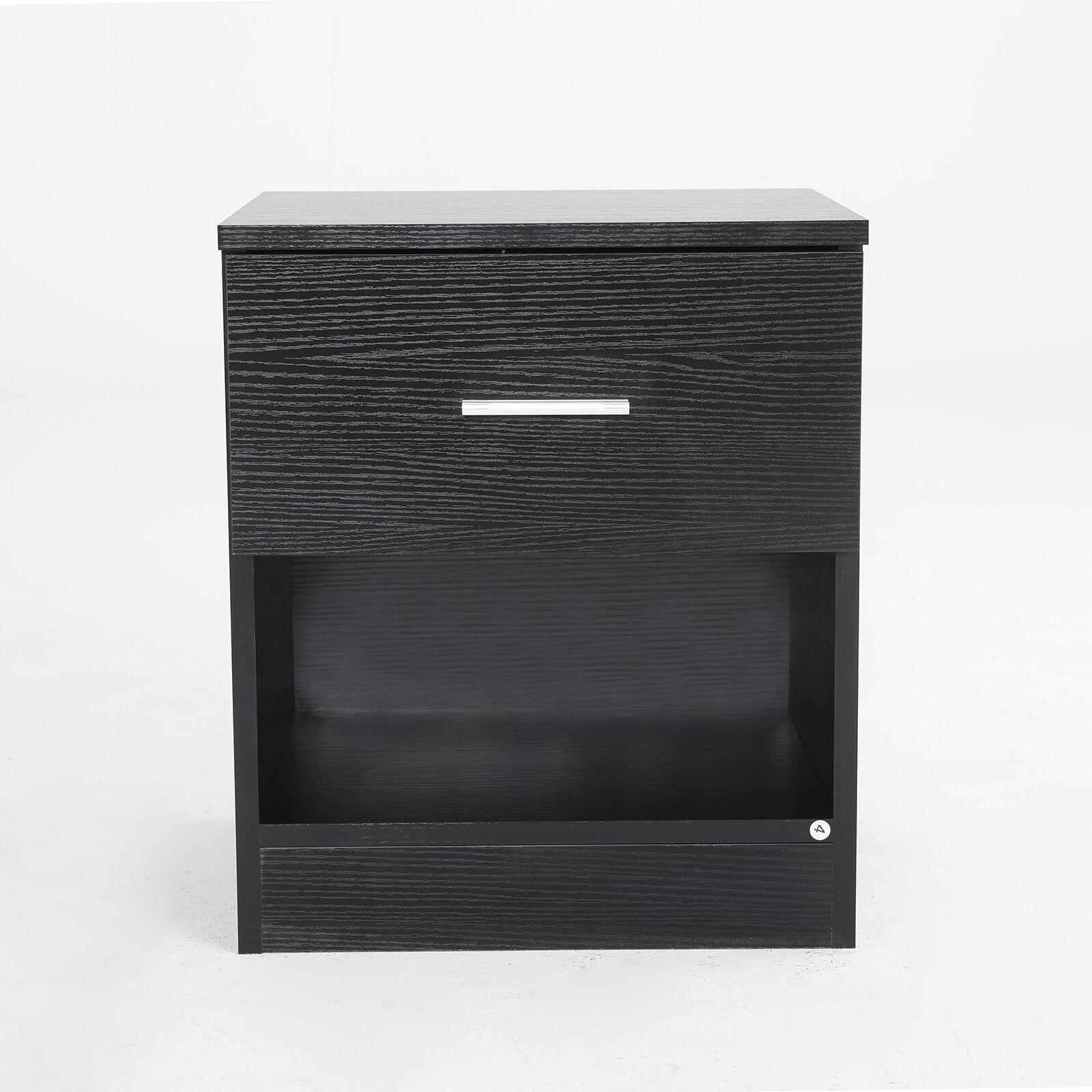 $44.17La Bella Bedside Table Side Storage Cabinet Nightstand Bedroom 1 Drawer 1 Shelf ELLA - Black