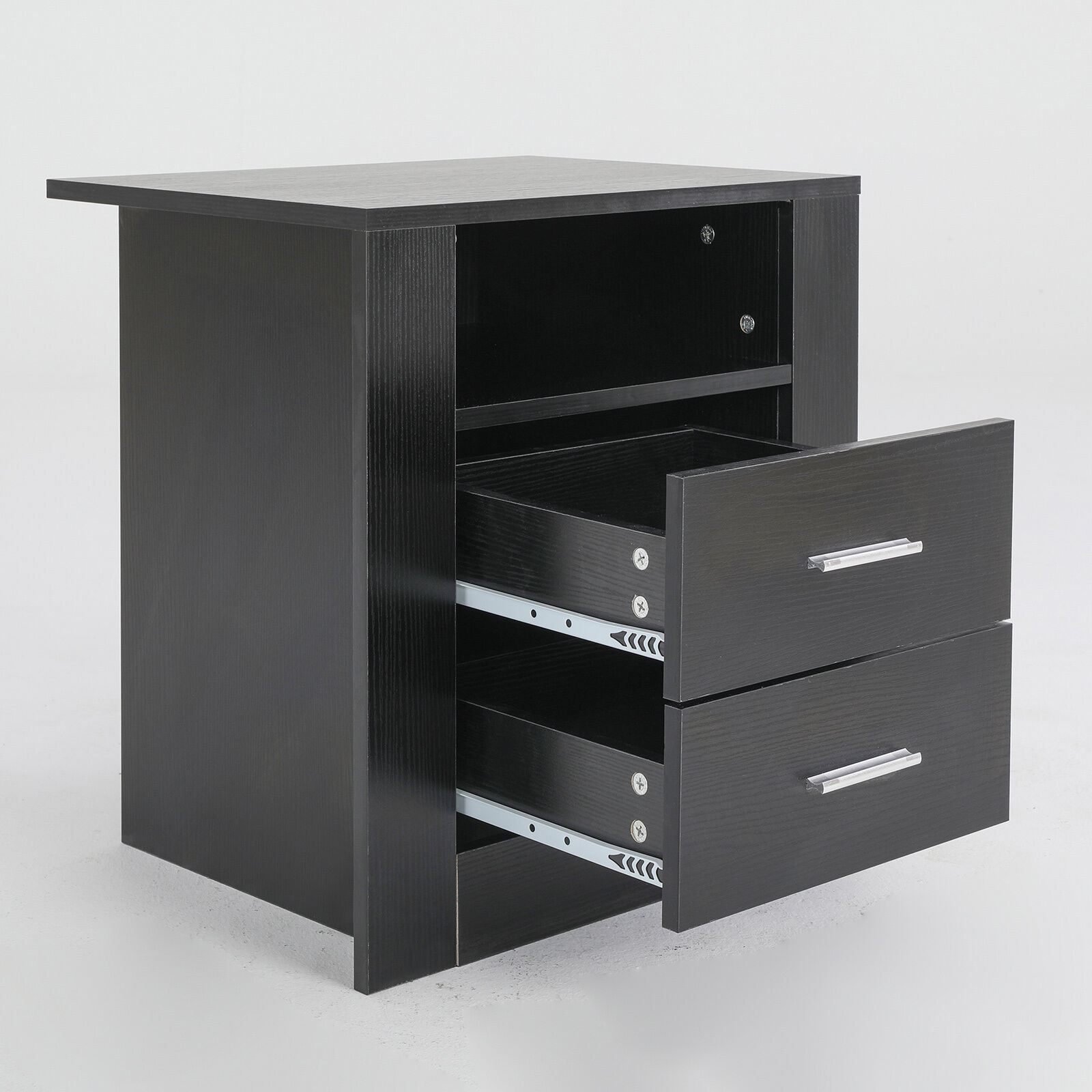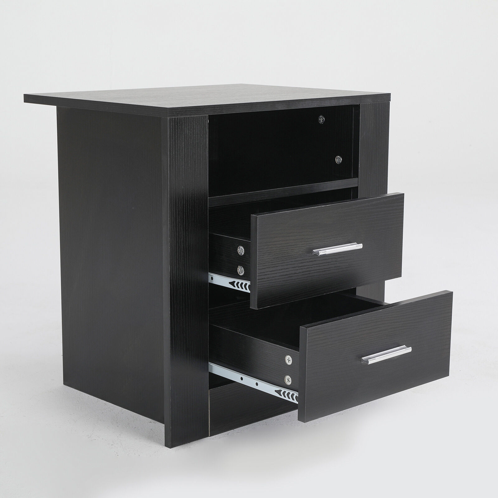 $88.35La Bella Bedside Table Side Storage Cabinet Nightstand Bedroom 2 Drawer 1 Shelf ZURI - Black
