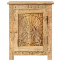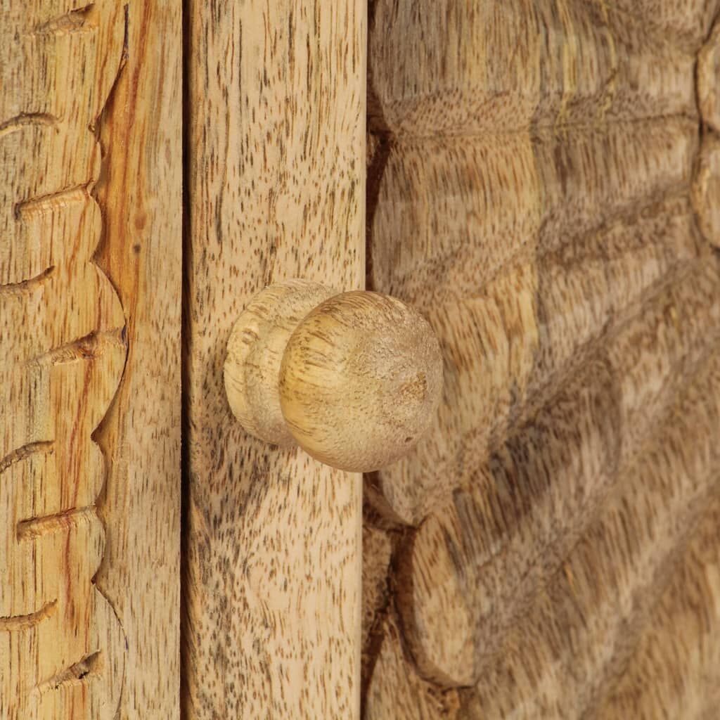The wooden bedside table will make a timeless addition to your interior decor. The side table is made of solid mango wood and is highly stable and durable. The sturdy top is ideal for placing your glasses, books, teacups, etc. The nightstand provides storage space for keeping your various items neatly organised. The carved details give the bedside table a touch of elegant charm. This item is already assembled; no assembly is required. Important note: The colours and grains of the wood may vary from piece to piece, making each piece unique and slightly different from the next; the delivery is random.