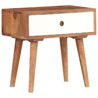 This modern-style, solid Sheesham wood bedside table has a stable and secure tabletop not only for placing an alarm clock, a reading lamp, books, or other things, but also for displaying photo frames or other decorative items. Its drawer provides ample space for keeping all kinds of smaller items organised and within reach. The wooden nightstand will make a practical as well as decorative addition to your bedroom. This side table is made of solid Sheesham wood. The Sheesham is a tropical hardwood which is not only famous for its rich grains, but also known as rosewood or palisander. This bed stand is fully handmade. It's beautiful wood grains make every piece of furniture unique and slightly different from each other. Important note: Colours vary from piece to piece which makes each piece unique. The delivery is random, ensuring the exclusivity and individuality of your product.