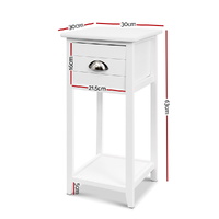 With its vintage chic, our Artiss Thyme Bedside Table is as stylish as it is practical. The 18mm thickness Paulownia wood and MDF construction ensure that the furniture piece is able to withstand daily robust use. The drawer is deep and runs smoothly while the bottom shelf adds an extra display shelf. Use it in any space or in any room where a convenient and compact drawer will do wonders to your storage needs. Finished in an eco-friendly non-toxic paint, the ensemble also includes an antique-inspired handle and anti-scratch feet pads.