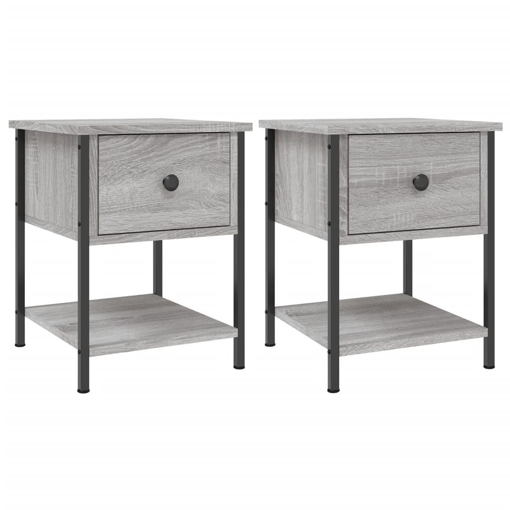 These bedside tables with an elegant design make a timeless addition to your interior decor. Durable material: The engineered wood is of exceptional quality with smooth surface and also features strength, stability and resistance to moisture. Sturdy frame: The metal frame ensures sturdiness and stability.Ample storage space: The side table offers ample storage space for keeping your various daily essentials well organised and within easy reach. Displaying function: You can also place your favourite photos, decorations, or flowers on top of the bedside cabinet to enrich your life.Adjustable feet: Four adjustable feet with plastic pads keep the side cabinet balanced on uneven ground and increase stability.
