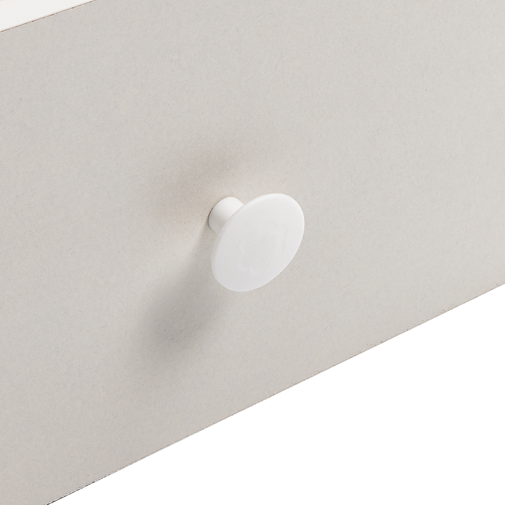 Attention to detail sets this bedside table apart. It features safe rounded corners for added safety, anti-rust coated metal slides for smooth drawer operation, and a sleek cut-out handle that adds to its clean and modern aesthetic.