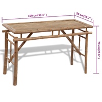 This high-quality bamboo garden set consists of 1 beer table and 2 matching benches, and it will create a tropical atmosphere in your garden or on your terrace. The table and the benches are foldable, thus portable, and can be easily stowed away or set up. Made of weather-resistant and waterproof bamboo, the set is durable, and also easy to clean with a damp cloth. Note: In order to extend the life of your outdoor furniture, we recommend you to clean it regularly and do not leave it outdoors without protection unnecessarily.Clean: Use a mild soap solutionStoring: If possible, store in a cool, dry place indoors. If the product is stored outdoors, protect it with a waterproof cover. Wipe and dry the excess water or snow from flat surfaces after a rain or snowfall. Allow sufficient air circulation to avoid moisture-related damage.