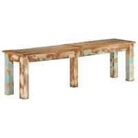 Relax on this wooden bench. Featuring a simple design, it integrates effortlessly into any environment. Solid reclaimed wood: Solid reclaimed wood consists of reused timbers such as teak, mango wood, pinewood, and beech. These materials are recycled from old buildings such as factories, sheds, and boats. As every piece is handmade, colours will vary for each product.Suitable for any interior: With its simple look, the stylish yet versatile bench seating will make a great addition to any area of the house. It also matches perfectly today's trends.Easy to clean: The surface is easy to clean with a damp cloth. Note:The colours may vary from piece to piece, making each piece unique and slightly different from the next. The delivery is random, ensuring the exclusivity and individuality of your product.